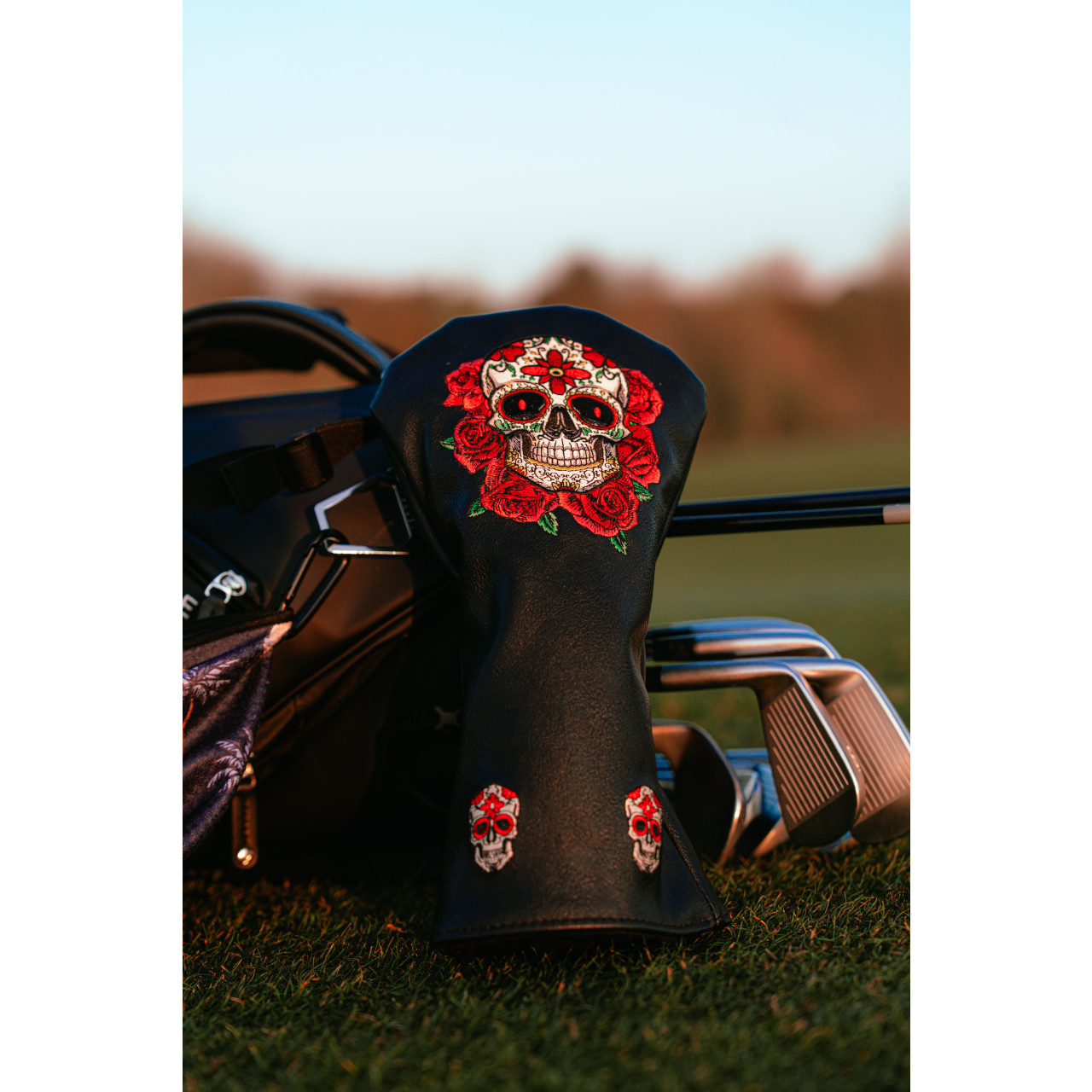 Na zadní straně headcoverů je stylově vyšívané klasické logo Skins Golf.